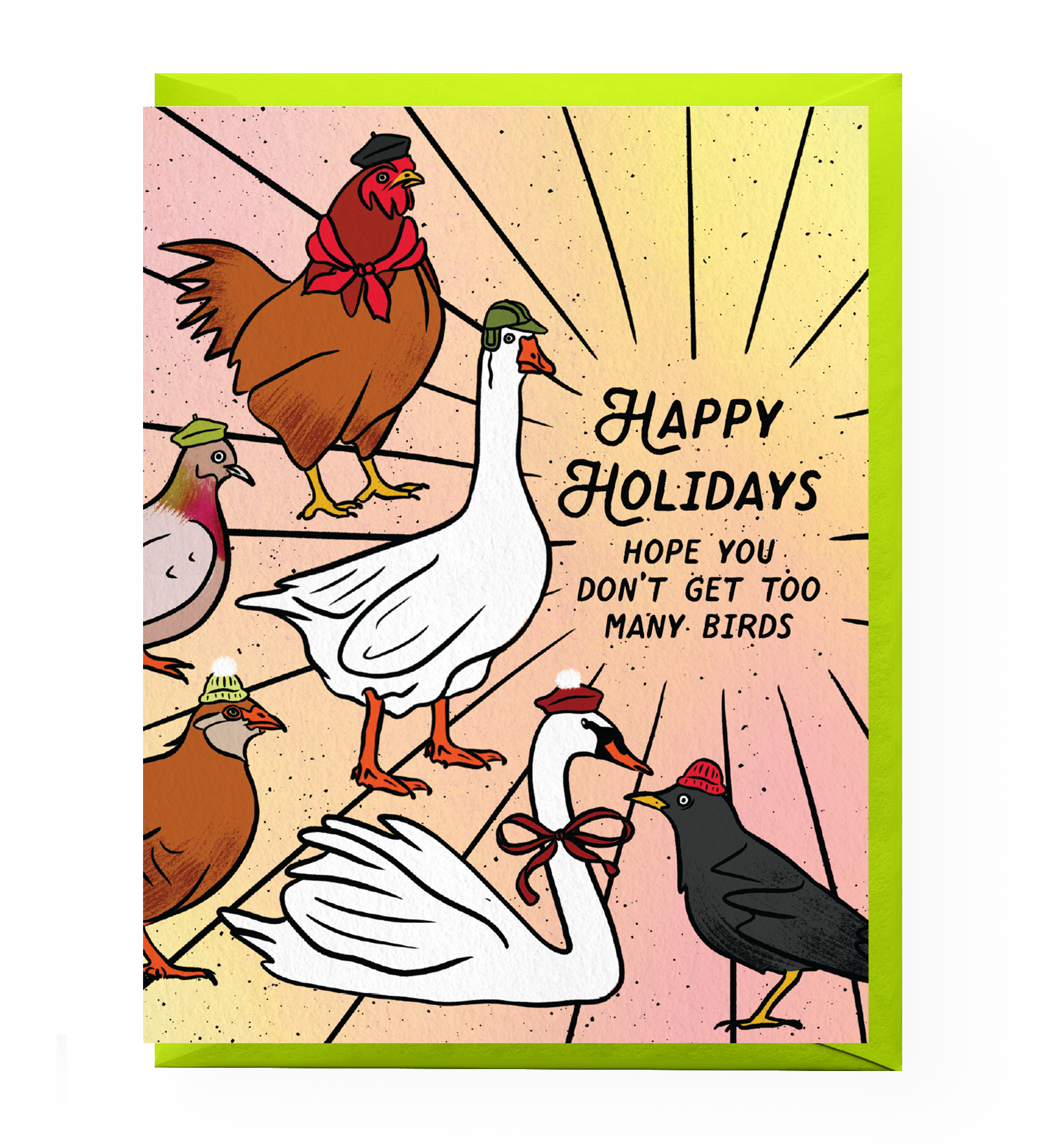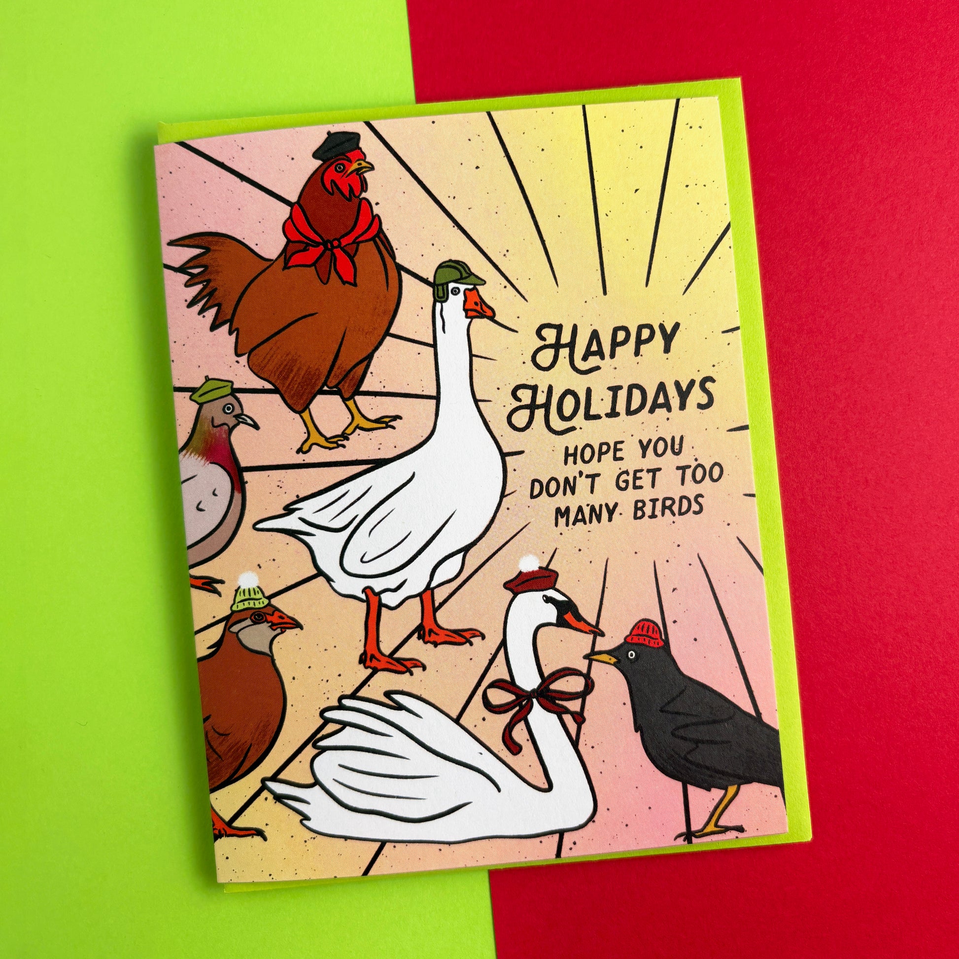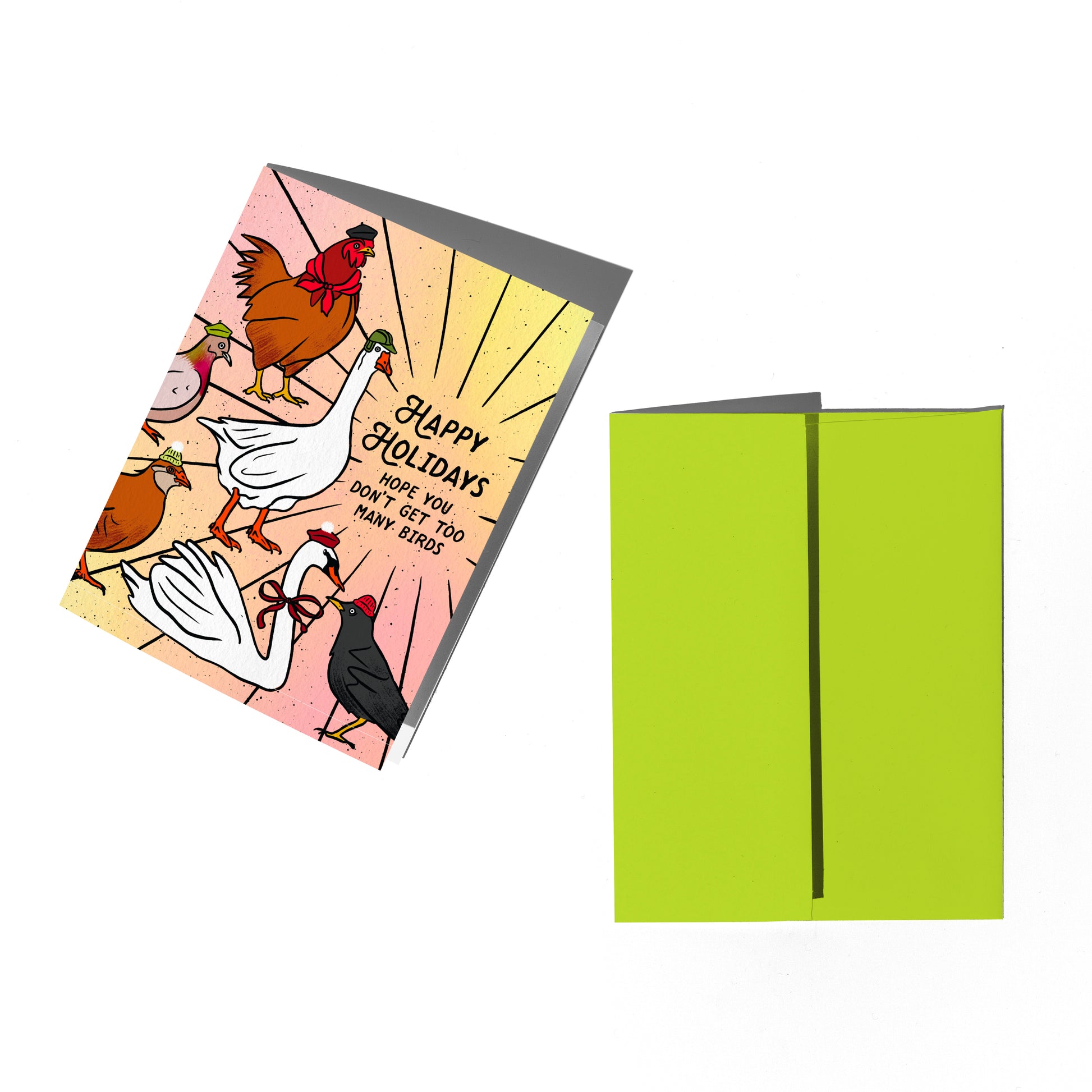 A playful take on the 12 Days of Christmas, this card features an illustrated flock of festive birds and a tongue-in-cheek holiday wish.